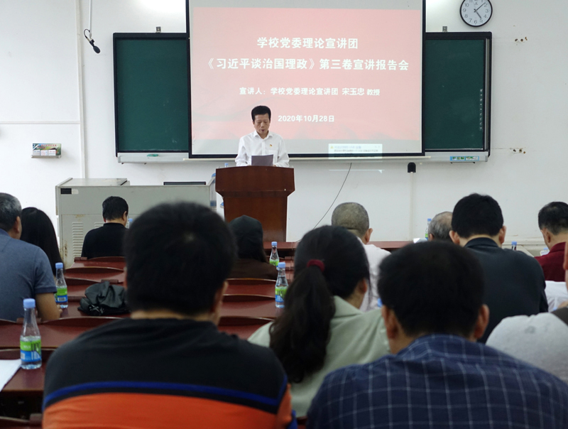 10月28日下午,電子與信息工程學院黨委在鐘海樓06022召開了《習近平談治國理政》第三卷宣講報告會。本次宣講報告會由學院黨委書記宋雅主持,馬克思主義學院黨總支書記、學校黨委理論宣講團副團長宋玉忠教授主講,學院全體教職工參加。