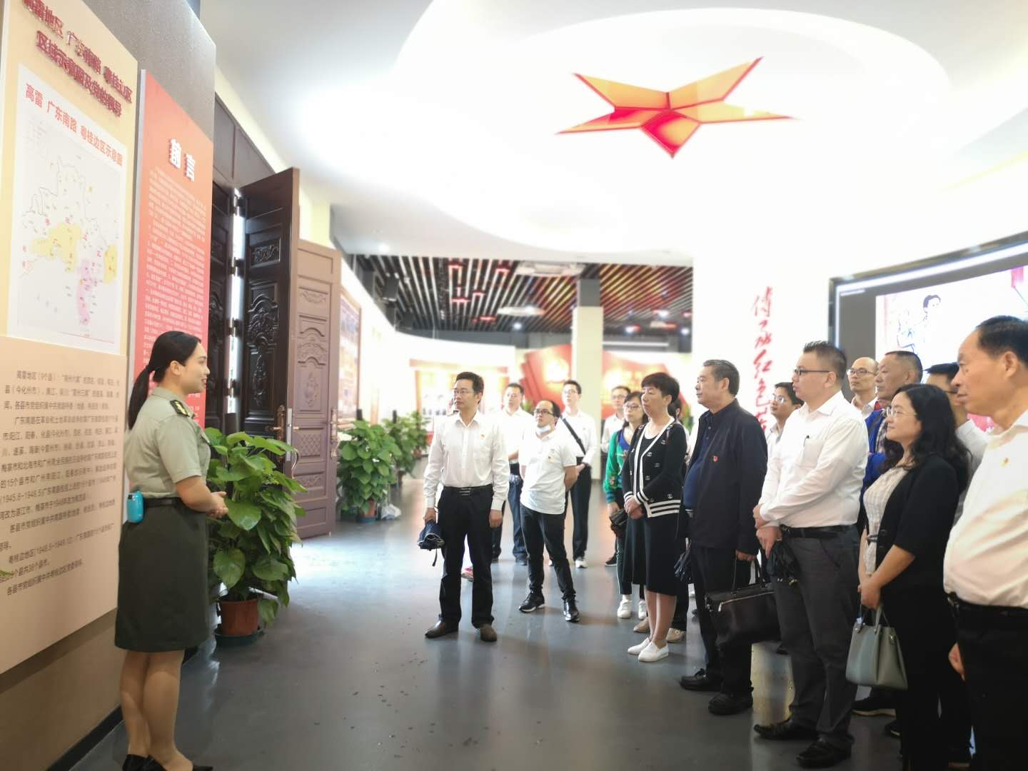 隨后,全體人員進(jìn)館參觀。大家一邊參觀柑村革命烈士生平事跡介紹和物品陳列,一邊聆聽革命先輩的英勇事跡。透過一張張泛黃的照片,一件件珍貴的舊物,伴隨著講解員的深情解說,七十多年前波瀾壯闊的革命歷史畫卷緩緩展開。柑村是著名的革命老區(qū)村,擁有豐富的紅色資源,先后有35人參加中國共產(chǎn)黨,近千人參加革命活動,數(shù)十人為國捐軀,為革命所作貢獻(xiàn)之大,犧牲人數(shù)之多,在整個南路是少有的。在參觀過程中,每一位黨員干部都被“開拓進(jìn)取、敢為人先、求真務(wù)實、扎根基層、艱苦奮斗、信念堅定”的南路革命精神所感動、倍覺鼓舞。