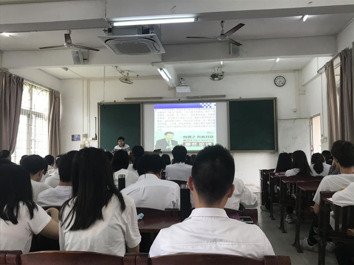陳偉斌以“新中國主要發展歷程、成就與啟示”為主題,帶領同學們回顧了新中國發展歷程,特別提到了“抗美援朝精神”與“兩彈一星精神”,要求同學們傳承與發揚革命先輩“英勇頑強、舍生忘死”與“舍小家,為大家”的精神。在講述新中國發展取得的偉大成就的時候,陳偉斌從經濟總量、居民收入、科技實力、國防建設等12個方面展示了祖國發生的翻天覆地的變化。最后,他從堅持中國特色社會主義制度、堅持中國共產黨領導、堅持改革開放、始終代表人民群眾四個方面總結了新中國發展的經驗啟示,并向同學們勾畫了中國未來的美好圖景。