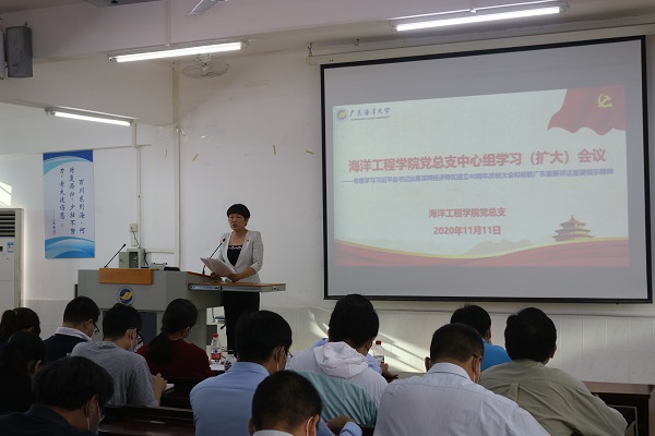 11月11日下午,海洋工程學院黨總支召開中心組學習(擴大)會議,專題學習習近平總書記出席深圳特區建立40周年慶祝大會和視察廣東重要講話重要指示精神、黨的十九屆五中全會精神,學院黨總支委員、全體教工黨員、干部和在崗教師共計40人參加學習,學院黨總支書記鄧偉主持會議。