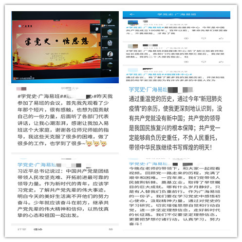 會上,全體成員觀看了建黨百年主題MV《少年》。接著,易班站長團和各部門學生干部代表依次分享了學習體會。大家紛紛表示,作為易班學生團隊的一員,將不忘初心、砥礪前行,深入學習黨史,傳承紅色基因,爭做新時代有志青年。