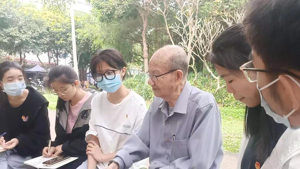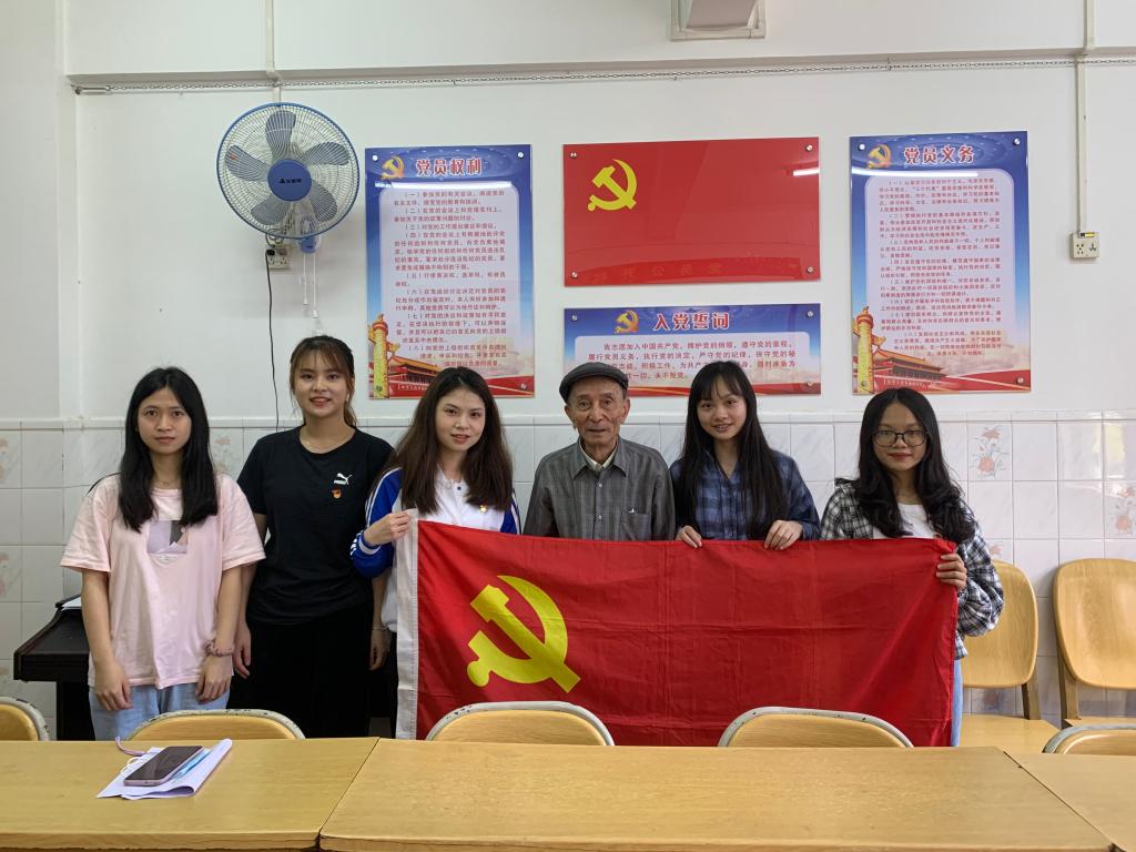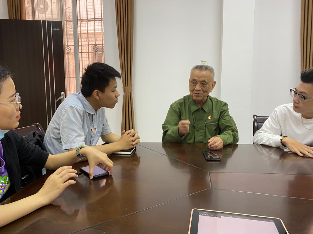 20日,學生代表分為三個小組,走街串巷、進村入戶尋訪老黨員、老戰士、老模范。在海濱公園,同學們采訪了93歲高齡的羅國華老同志,羅老先生是跟隨著黨從抗日戰爭和解放戰爭勝利走過來的老戰士,1941年便加入了中國共產黨,從此將自己的一生都奉獻了給黨,退休后堅持給廣大青年學子講述黨史和革命史。在此次采訪中,羅老先生給同學們上了一堂生動詳實的黨課,他勉勵同學們要繼承和發揚黨領導革命的優良傳統與作風,好好學習文化知識,認真深入學習黨史,爭取早日成為國家的棟梁,即使不能成為國家的棟梁,也要盡力為國家做貢獻。在赤坎軍休所活動中心,同學們如約見到了田欣民老黨員。田老先生原是空軍二師副參謀長,飛行時長達29年,1991年退伍,曾被中組部評為全國離退休干部先進個人。在訪談中,田老先生回顧了自己作為一名光榮的人民空軍的飛行生涯,教育引導同學們時刻要以一顆赤子之心、忠于祖國、忠于黨,踐行黨為人民服務的初心和使命,有一份心出一份力,遇事要沉著冷靜,善于依據平時的經驗和學到的知識積極應對。在黎耀老黨員的家里,同學們受到了熱情的接待。黎老先生家鄉是革命老區,從小就受中國共產黨領導革命的影響,青少年時期便跟隨當地的地下黨組織參加革命,剛滿18周年就入黨了,至今已有50年黨齡。在訪談中,黎老先生講述了其從小就參加革命的故事、入黨前后的思想變化,以及工作期間和退休后的難忘經歷,希望同學們要始終堅定信念,愛國愛黨,學好本領,為社會、為人民貢獻一份力量。