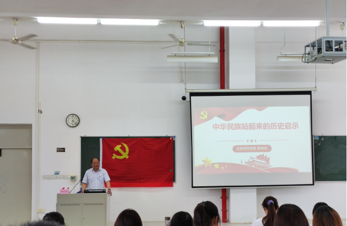 陳偉斌以“中華民族站起來的歷史啟示”為主題,通過豐富詳實(shí)的史料回顧了中國共產(chǎn)黨成立以來的歷史背景,重溫了中國共產(chǎn)黨自1921年成立至今帶領(lǐng)中國人民所經(jīng)歷的百年艱苦卓絕的奮斗歷程,總結(jié)了中華民族站起來、富起來、強(qiáng)起來的歷史啟示:一是沒有共產(chǎn)黨就沒有新中國;二是必須堅(jiān)持以人民為中心的發(fā)展思想;三是堅(jiān)持馬克思主義與中國具體實(shí)際相結(jié)合;四是勇于面對任何困境、戰(zhàn)勝任何困難;五是樹立核心意識,維護(hù)黨中央的權(quán)威;六是善于總結(jié)經(jīng)驗(yàn)、糾正錯(cuò)誤,在實(shí)踐中不斷前進(jìn)。他勉勵同學(xué)們要加倍珍惜今天來之不易的幸福生活,從黨史中汲取智慧和精神力量,堅(jiān)定理想信念。