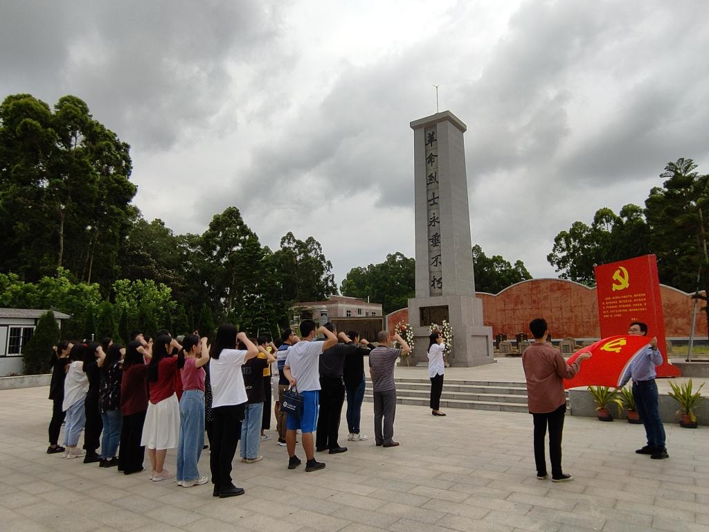 在南路革命紀念園內,全體師生黨員肅立在革命烈士紀念碑前默哀。面對鮮紅的入黨誓詞碑,劉艷帶領師生黨員鄭重舉起右手,堅定初心使命,進一步提升黨組織的凝聚力、戰斗力、感召力。全體黨員排著整齊的隊伍繞行紀念碑一圈,瞻仰烈士紀念碑,深情緬懷先烈、祭奠英靈。