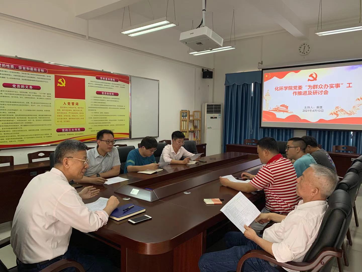 為貫徹落實(shí)黨史學(xué)習(xí)教育工作,扎實(shí)開展“我為群眾辦實(shí)事”實(shí)踐活動(dòng),按照學(xué)校黨委有關(guān)布置和要求以及學(xué)院黨委工作安排,4月14日,化學(xué)與環(huán)境學(xué)院黨委在第三實(shí)驗(yàn)樓B302召開“我為群眾辦實(shí)事”工作推進(jìn)及研討會(huì),學(xué)院黨委書記、副書記、各黨支部書記參會(huì),會(huì)議由學(xué)院黨委書記蔡鷹主持。
