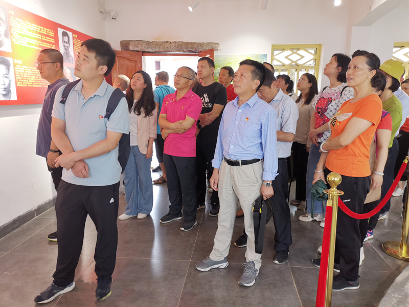 在中共徐聞縣臨時工委舊址—徐聞墩尾革命紀念館廣場前,全體教工黨員在宋雅的帶領下,開展莊嚴的重溫入黨誓詞活動。隨后,在紀念館講解員的引導解說下,一行人參觀了抗日救亡活動紀念室、墩尾會議舊址及徐聞墩尾革命紀念館。懷著對革命先烈的崇高敬意,教工黨員們認真聆聽、仔細觀看并討論思考,深入系統地了解了中國共產黨的基層組織在徐聞開展全民抗戰、解放徐聞的英勇奮戰的革命歷史,深深被程賡、林飛雄、陳兆榮、莊梅壽、陳醒吾、譚國強等先輩的英雄事跡所感動。