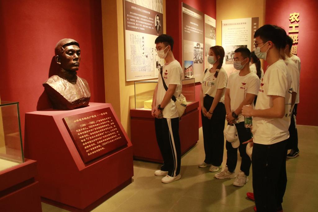 在博物館內,一行先后參觀了“粵桂邊區革命斗爭史展覽”“湛江人民抗法斗爭陳列”和“從廣州灣到湛江――湛江開埠百年歷史展覽”等7個主題展廳,全方位了解了國民革命、抗日戰爭以及解放戰爭時期,南路以至粵桂邊區人民革命斗爭腥風血雨的烽火歷程、革命烈士不怕犧牲英勇搏斗的歷史故事。面對一張張珍貴照片、一件件文獻實物,師生們認真端詳,駐足細讀,相互交流,了解背后故事,追尋歷史記憶,領悟先烈精神。在博物館外,學生代表黃鵬輝帶領全體團員重溫入團誓詞,面對鮮紅的團期,大家舉起右手、握緊拳頭,莊嚴宣誓。