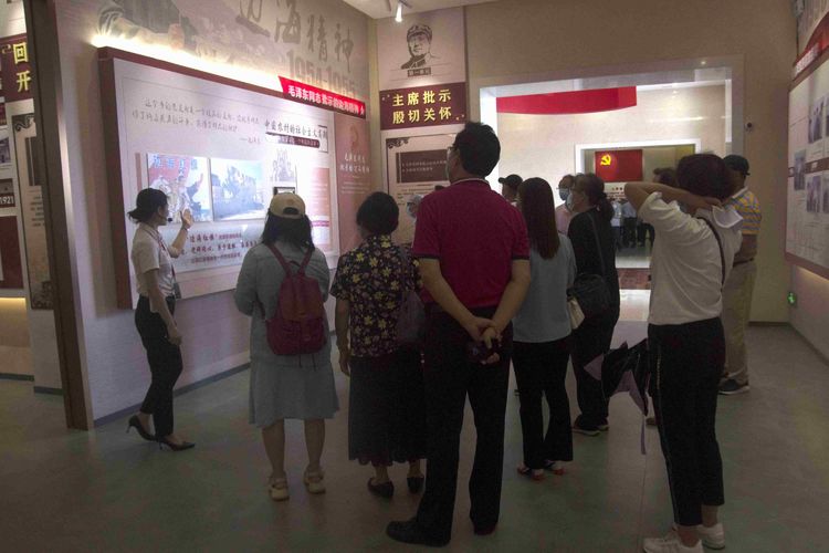 在邊海紅色展館里,面對鮮紅的黨旗,大家舉起右手莊嚴宣誓,重溫入黨誓詞。隨后,在離退休干部黨委書記索慶華的帶領下,大家觀看圖文實物展品,聆聽英雄事跡,緬懷革命先烈,重溫了那段波瀾壯闊的崢嶸歲月,深入體會到那種邊海黨支部戰天斗地、黨群連心、勇于進取、永葆本色的邊海紅旗精神。