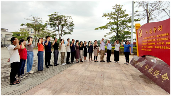 9月25-26日,圖書館組織黨員干部和職工群眾一行30多人前往陽江開展黨史教育和業(yè)務交流活動。在詹衍玲館長的帶領(lǐng)下,大家走進了陽春潭簕紅色展館,實地參觀潭簕村史館、陽春革命史館,詳細了解革命先烈的光輝歷史,緬懷老一輩的豐功偉績。通過一幅幅的圖片、一件件的物件、一個個真實的故事的展現(xiàn),大家近距離接受革命傳統(tǒng)教育,切身感受革命精神熏陶。在展館廣場前,黨員同志們面對黨旗黨徽,莊嚴地舉起右手,握緊拳頭,重溫入黨誓詞,用錚錚誓言表達為黨的事業(yè)奮斗的決心和忠心。