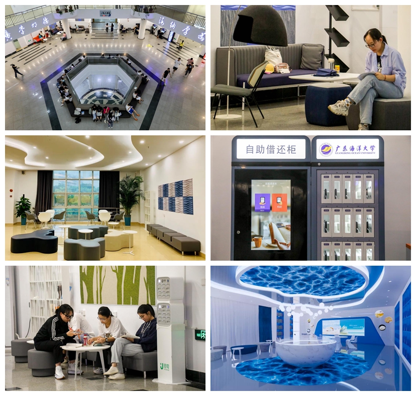 本學期,“顏值”一新、令人驚艷的還有學校的圖書館。經(jīng)空間改造、功能提升后的湖光校區(qū)圖書館,增設了新的服務臺、開放性休閑閱讀空間、智慧研討室、自助服務區(qū)、智慧展示空間、海洋文化主題館等設施,將實用性、創(chuàng)新性與舒適性融為一體,空間更大、功能更多,還有許多智慧化服務升級,進一步滿足了師生的不同需求,帶來更加舒適的閱讀和借閱體驗。