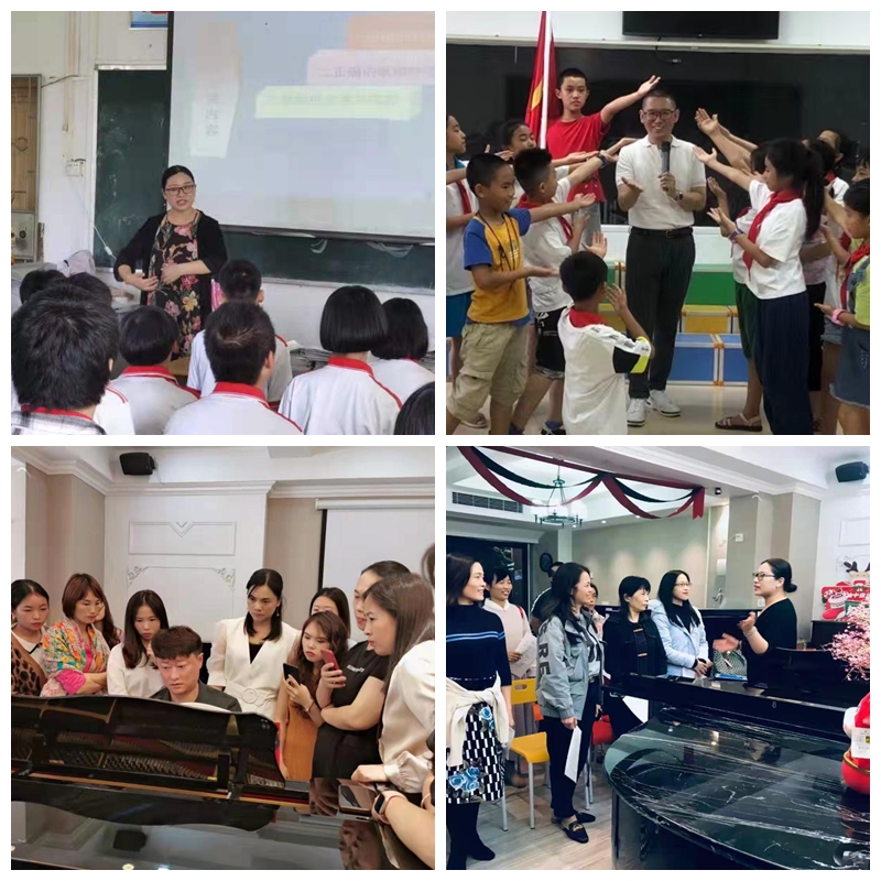 為助力本市中小學提升師資美育教學水平,提升學生美育水平,中歌藝術學院黨委把“我為群眾辦實事”實踐活動領域延伸到了校園之外,對接湛江市麻章區太平中學、太平中心小學、麻章中學小學部、湖光中心小學等4所中小學,開展了“美育浸潤行動計劃”和“社會公益音樂普及計劃”。學院抽調17名教師和研究生組成音樂、舞蹈、美術、影視傳媒4個小組,結合各學校美育工作特點,分別開設相關課程,推進每所中小學美育教育日常化、多樣化、特色化,將美的種子播撒進孩子的心田。