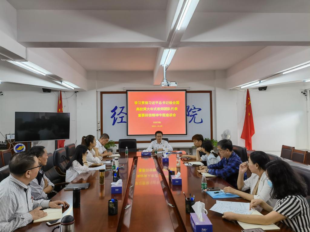 10月20日下午,經(jīng)濟學(xué)院在主樓會議室舉行學(xué)習(xí)貫徹習(xí)近平總書記給全國高校黃大年式教師團隊代表重要回信精神專題座談會。學(xué)院領(lǐng)導(dǎo),各系(辦)負責(zé)人、黨支部書記,以及海外留學(xué)訪學(xué)歸國教師等近20人參加座談會,會議由學(xué)院黨委書記肖文輝主持。