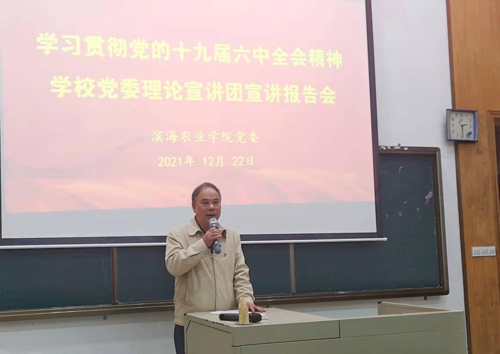 濱海農業學院黨委舉行學習貫徹黨的十九屆六中全會精神宣講報告會