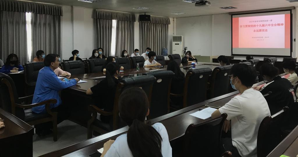 3月22日上午,食品科技學院黨委書記蘇永華在第三實驗樓A105會議室為30名入黨積極分子講授了2022年春季學期“思政第一課”,報告題目為《學習貫徹黨的十九屆六中全會精神,永遠跟黨走》。