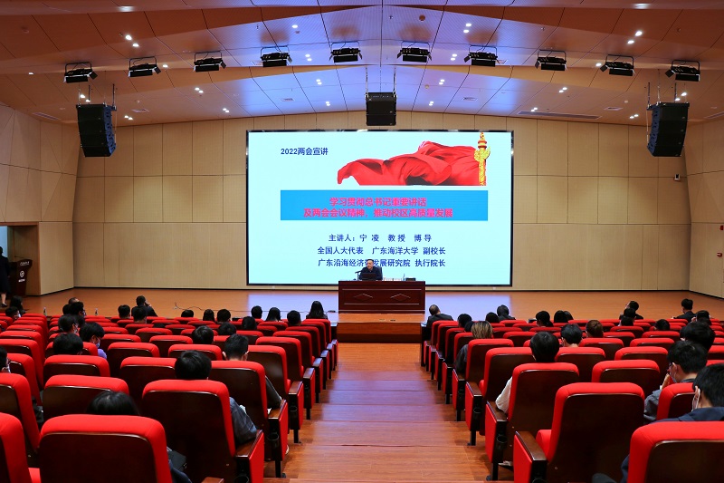 寧凌還與同學們分享了今年自己參加兩會履職的情況,并用“奮進新征程,建功新時代”“全程人民民主是中國特色的偉大民主”“代表職業身份有限,代表履職責任無涯”三句話來表達了自己今年參加兩會履職的感受。他號召陽江校區的教職工和同學們,要深刻學習領會習近平總書記在全國兩會期間重要講話和全國兩會精神,要像珍愛自己的眼睛一樣珍愛陽江校區,認真做好自己的本職工作,充分用好“有利條件”,堅決走好“必由之路”,同心同德、齊心協力,以史為鑒、開創未來,積極進取、逐夢前行,共同建設高質量、高水平校區,以優異成績迎接黨的二十大勝利召開。