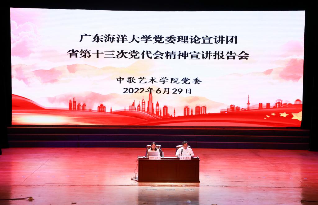 6月29日上午,中歌藝術學院在實驗劇場舉行“學習貫徹廣東省第十三次黨代會精神”專題宣講報告會,由學校黨委理論宣講團成員、馬克思主義學院教授孫淑秋主講。學院教職工、黨員和學生代表等共300余人在現場聽講,其他師生通過企業微信直播進行同步學習。學院黨委副書記農康主持宣講報告會。