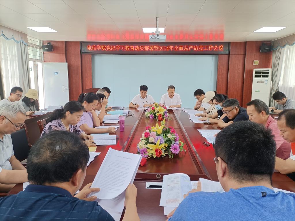 4月24日,電子與信息工程學(xué)院在湖光校區(qū)圖海樓604會議室召開黨紀(jì)學(xué)習(xí)教育動員部署暨2024年全面從嚴(yán)治黨工作會議,學(xué)院領(lǐng)導(dǎo)、黨委委員、紀(jì)委委員、黨支部書記、副高職稱以上教師,各系(室、中心)主任、副科以上干部、組織員、團(tuán)委書記參加了會議。會議由學(xué)院黨委書記袁仁廣主持。