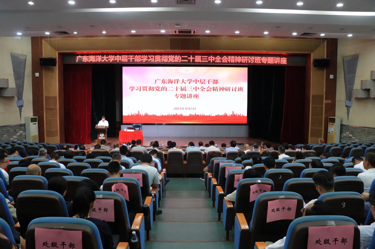 9月5日上午,學校在湖光校區廣學樓多功能廳舉辦中層干部學習貫徹黨的二十屆三中全會精神研討班專題講座。湛江市哲學政治經濟學學會會長廖東以《貫徹黨的二十屆三中全會精神 推動湛江經濟高質量發展》作專題輔導報告。學校領導、中層干部參加講座。學校黨委書記楊洲主持講座。