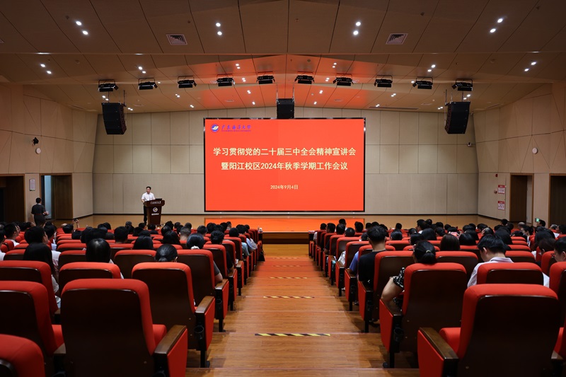 為深入貫徹落實(shí)黨的二十屆三中全會(huì)精神,傳達(dá)學(xué)校2024年秋季學(xué)期工作會(huì)議精神,進(jìn)一步明確校區(qū)新學(xué)期工作方向,9月4日下午,陽(yáng)江校區(qū)在海納樓113報(bào)告廳召開(kāi)學(xué)習(xí)貫徹黨的二十屆三中全會(huì)精神宣講會(huì)暨2024年秋季學(xué)期工作會(huì)議。學(xué)校黨委常委、副校長(zhǎng)、陽(yáng)江校區(qū)黨委書(shū)記、管理辦公室主任周昌仕出席活動(dòng)并作宣講報(bào)告。校區(qū)黨委副書(shū)記丁永成主持會(huì)議。校區(qū)黨委副書(shū)記陳永強(qiáng),全體教職工參加會(huì)議。