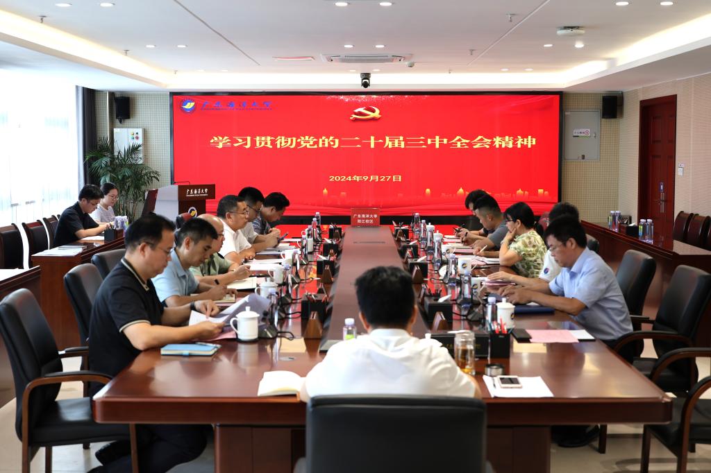 9月27日下午,陽江校區黨委在海納樓712會議室召開黨委理論學習中心組(擴大)會議,專題學習黨的二十屆三中全會精神。受校黨委常委、副校長、陽江校區黨委書記、管理辦公室主任周昌仕的委托,校區黨委副書記丁永成主持會議并講話。校區黨委理論學習中心組成員及校區各黨總支書記參加學習。
