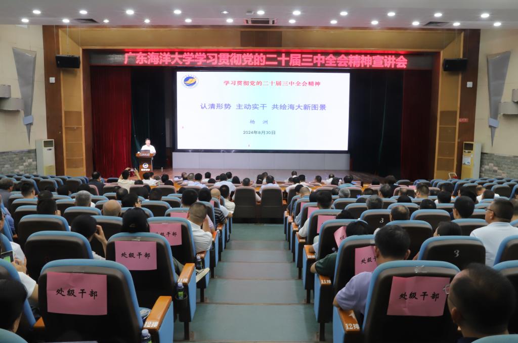 秋光為序催奮進(jìn),奮楫揚(yáng)帆啟新程。為深入貫徹落實(shí)黨的二十屆三中全會(huì)精神,進(jìn)一步明確新學(xué)期工作方向,凝聚共識(shí),推動(dòng)新學(xué)期各項(xiàng)工作開好局、起好步,8月30日下午,學(xué)校在湖光校區(qū)廣學(xué)樓多功能廳召開學(xué)習(xí)貫徹黨的二十屆三中全會(huì)精神宣講會(huì)暨2024年秋季學(xué)期工作會(huì)議。學(xué)校黨委書記楊洲主持會(huì)議并作宣講報(bào)告。學(xué)校領(lǐng)導(dǎo)、全體處級(jí)干部參加會(huì)議。