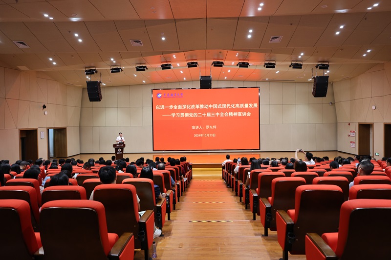 10月23日下午,陽江校區在海納樓113報告廳舉行學習貫徹黨的二十屆三中全會精神宣講報告會。學校黨委理論宣講團成員羅東輝作了題為《以進一步全面深化改革開辟中國式現代化廣闊前景》的專題輔導報告,校區黨委副書記丁永成主持報告會,校區黨委副書記陳永強,各單位(部門)負責人,全體教職員工參加會議。
