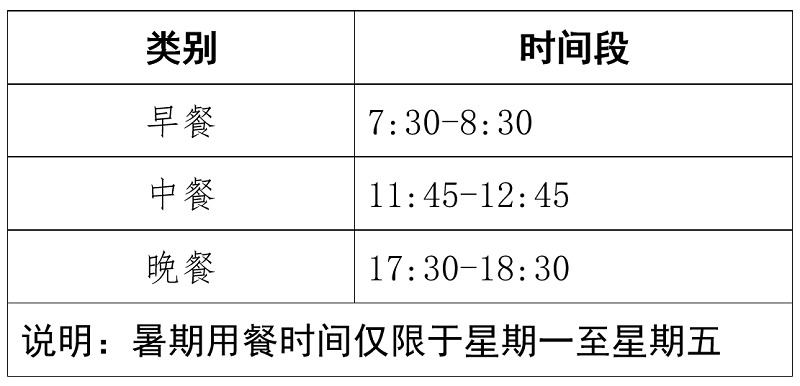 陽江校區(qū)桃李食苑暑期開餐時(shí)間表