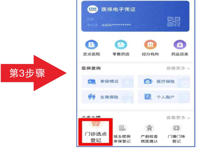 居民醫保參保人可按照就近原則先在是鄉鎮衛生院或社區衛生服務中心中選定1家基層醫院為參保人的普通門診定點醫院。選定后,需滿1年后允許變更。操作如下: