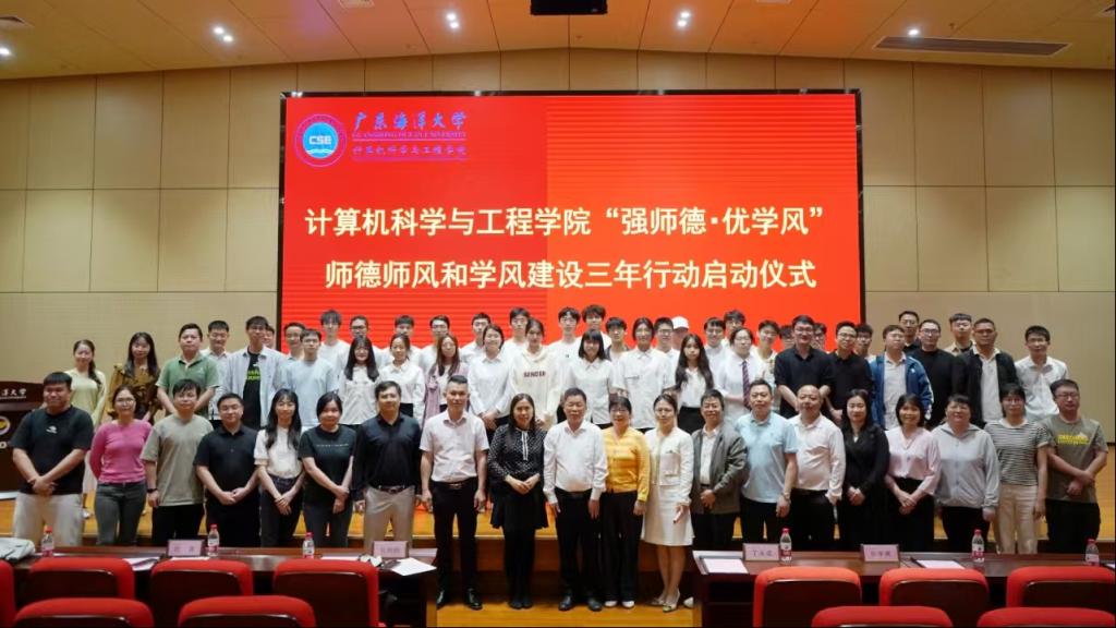 為進一步加強學(xué)院師德師風(fēng)和學(xué)風(fēng)建設(shè),營造濃厚的學(xué)術(shù)氛圍,4月15日晚上,計算機科學(xué)與工程學(xué)院在海納樓113順利舉行“強師德·優(yōu)學(xué)風(fēng)”師德師風(fēng)和學(xué)風(fēng)建設(shè)三年行動啟動儀式。陽江校區(qū)黨委副書記丁永成,計算機科學(xué)與工程學(xué)院黨總支書記劉利群,陽江校區(qū)黨委委員、管理辦公室副主任、組織人事部部長劉波,陽江校區(qū)黨委委員、學(xué)生事務(wù)部部長孫學(xué)甫,計算機科學(xué)與工程學(xué)院副院長趙男男以及學(xué)院全體教職工和學(xué)生代表參加本次活動。