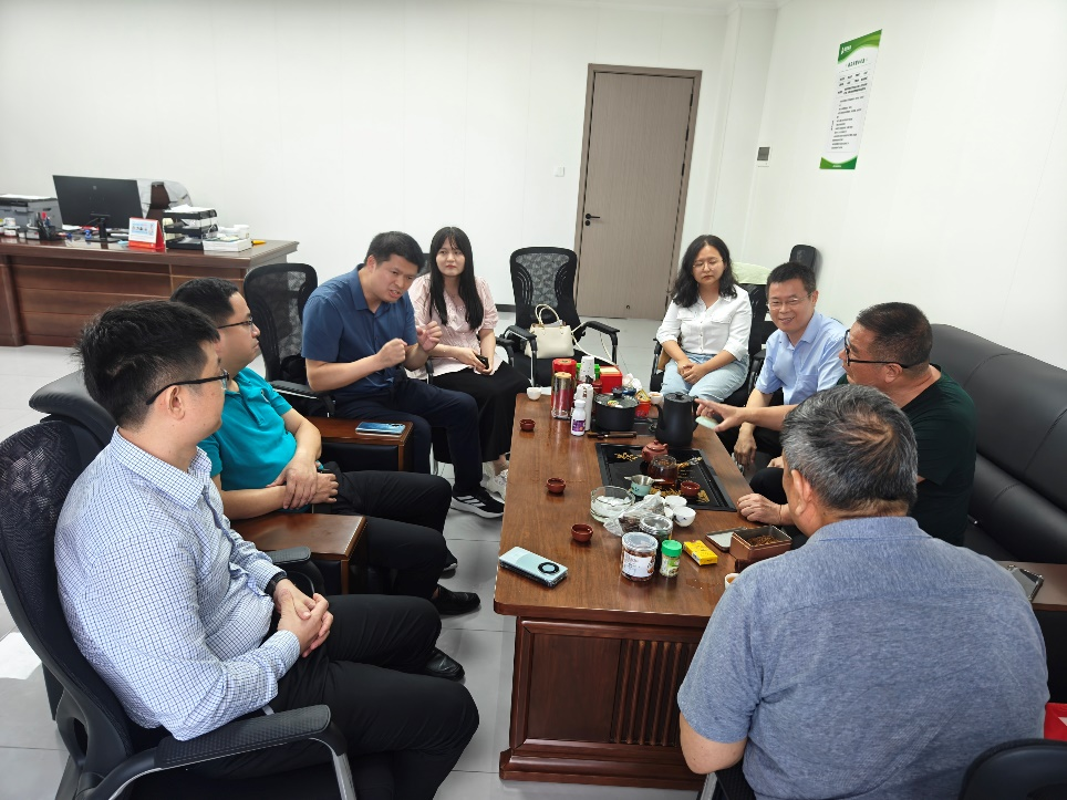 5月7日,食品科學與工程學院黨總支書記夏杏洲帶領學院專家團隊7人,深入廣東省壹信生物科技有限公司開展調研。壹信生物科技董事長岑長戰(zhàn)、研發(fā)總監(jiān)周明印陪同調研。調研團隊參觀了壹信生物科技的研發(fā)中心、生產車間與質量檢測實驗室,詳細了解壹信生物科技最新的研發(fā)項目、產品生產標準化流程、智能制造技術以及各類精密儀器設備。通過現(xiàn)場參觀,調研團隊獲得了豐富的教學案例,也啟發(fā)了科研靈感。