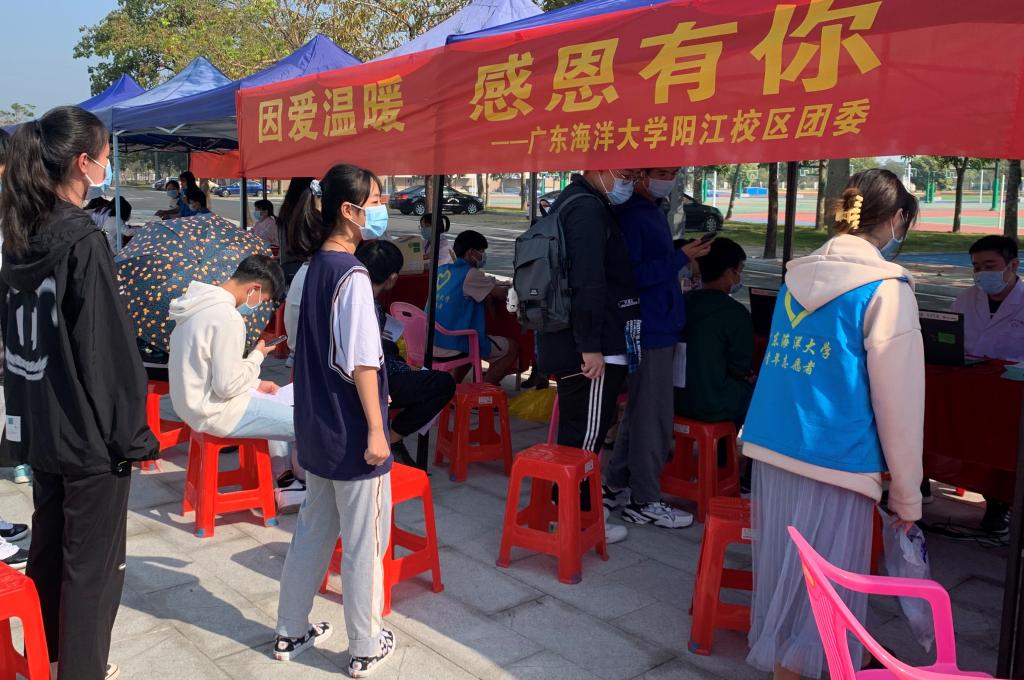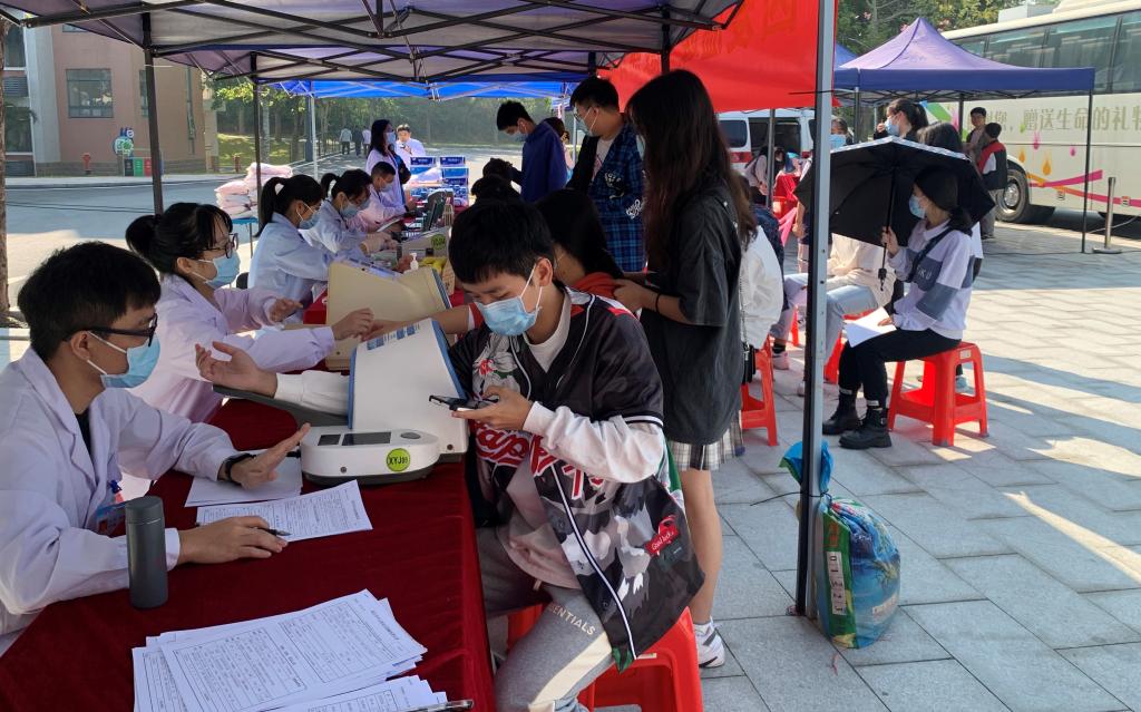 獻血活動從上午10:00開始持續(xù)到下午17:00,由校區(qū)團委青年志愿者協(xié)會面向全校招募志愿者組成的“獻血活動服務隊”全程協(xié)助獻血活動的開展。獻血過程中,嚴格遵守疫情防控期間的獻血規(guī)定,參加獻血的師生全程佩戴口罩、保持安全距離,志愿者們組織同學們有序地排隊,依次填表、體檢、驗血型、采血,每一個步驟都井然有序地進行。