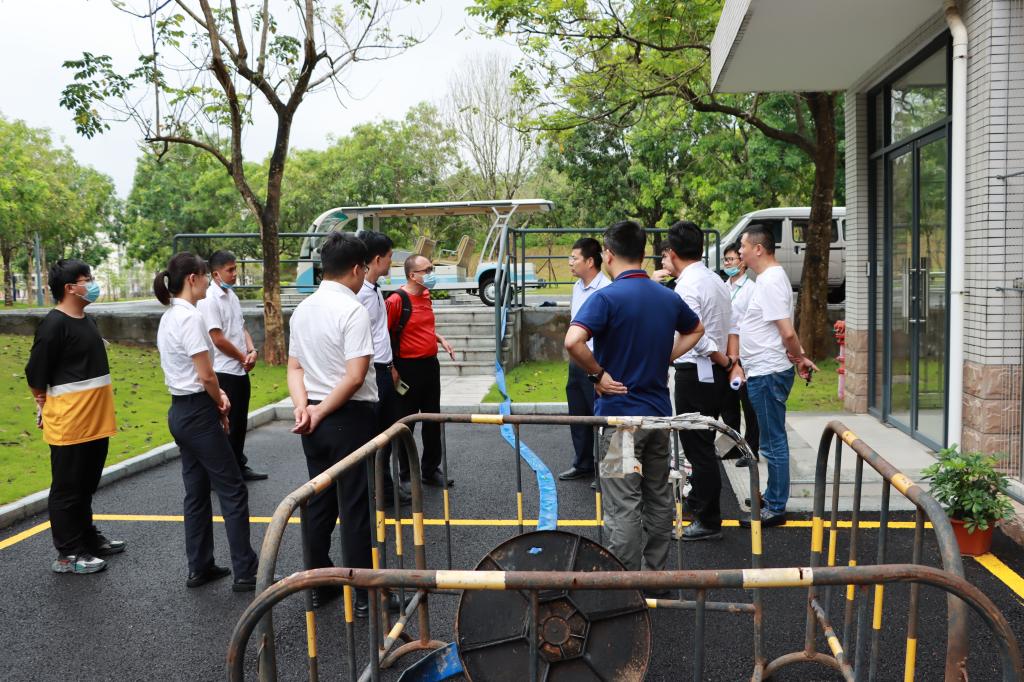 一行人實地走訪了海禮樓、海科樓、教學樓、厚為樓、海納樓等重點受損區域,查看了海科樓和厚為樓地下車庫的電路設備情況,詳細了解排水情況。一行人就解決瞬時大雨排水、避免再次發生相類似的情況展開了討論,形成了可行的整改措施。