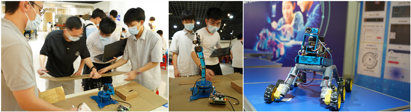 活動當天,計算機科學與工程學院的參賽選手在學院關靖濤、梁桂煌、關棋元老師的帶領下,按照疫情防控有關要求進入賽場。校區學生參賽作品包括送快遞小車、核酸檢測機器人、防疫機器手、智能停車場、智能消防系統等。