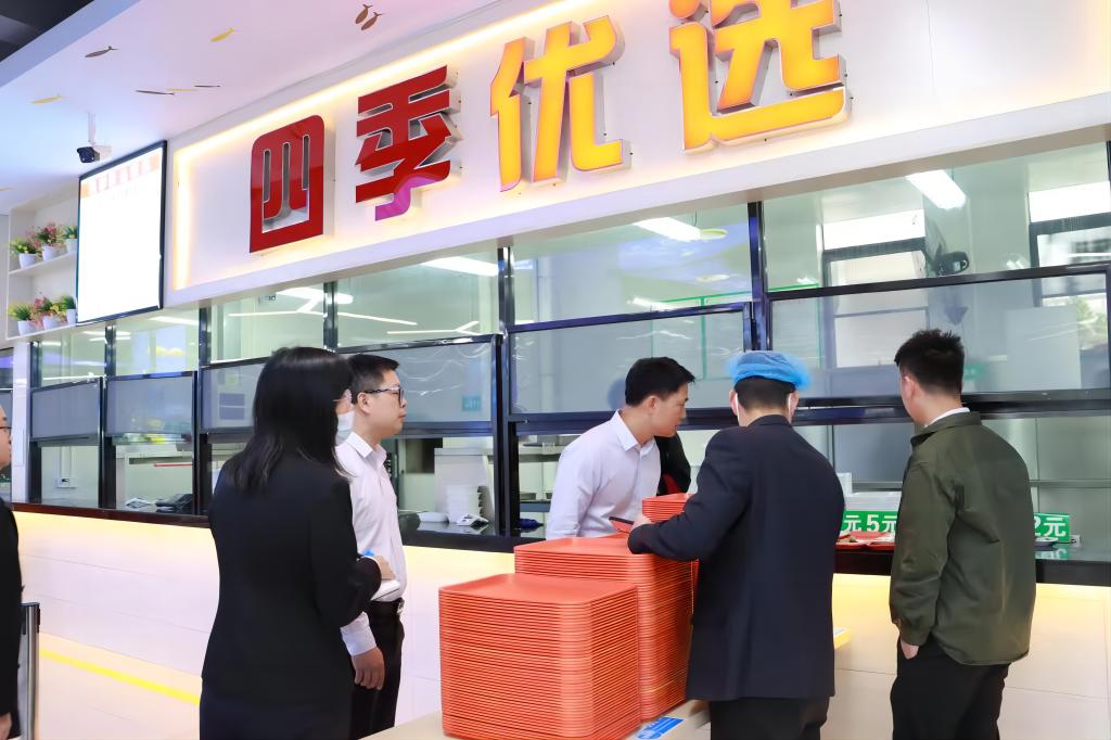 一行人現場檢查了桃李食苑菜品價格、食品加工、食品留樣、餐具消毒、倉庫管理等情況,特別針對食品留樣和食品安全制度落實情況進行了仔細詢問和檢查,并現場咨詢了食堂用餐同學們的情況、意見和建議。