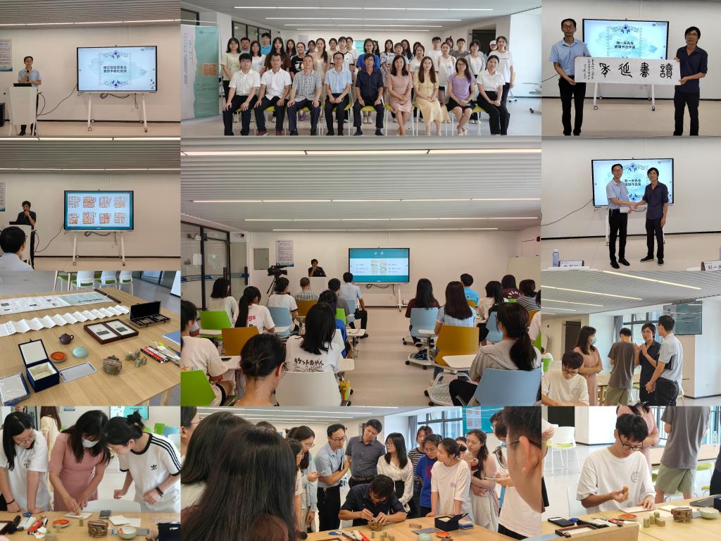 為弘揚中華優秀傳統文化,展示篆刻藝術魅力,5月31日,陽江校區圖書館在海納樓(圖書館)207室創客空間舉辦“方非一式”大學校園篆刻藝術公益講座。本次活動特邀陽江市青年篆刻家、陽江市美術館劉一夫先生為主講嘉賓,陽江校區管委會委員李鵬虹出席活動并致辭,陽江校區圖書館負責人李中及60余名師生參加。
