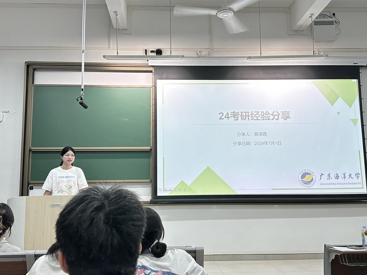 在嘉賓分享經驗環節,蔡澤霞、黃可欣、高原、羅安、蘇靜、郭舒帆六位嘉賓分別分享了自己考取研究生的獨特經驗。蔡澤霞、羅安、蘇靜和郭舒帆順利通過2024年全國碩士研究生招生考試,成功考取研究生,他們詳細介紹了考研信息搜集渠道、專業院校選擇、各科備考建議、復習時間規劃、復試方法技巧等,從不同角度分享備考建議。成功申請英國諾丁漢大學碩士研究生項目的黃可欣介紹了申請境外留學的經驗,建議同學們要盡早規劃,盡可能提高績點,并提前準備語言考試成績。成功保研至中國海洋大學的高原則詳細講述了個人保研的歷程,介紹了學校的保研政策細則,提醒有志保研的同學需要努力提升個人成績、積累科研和競賽成果、提升英語能力,并鼓勵同學們要胸懷理想,腳踏實地,勇敢追夢。