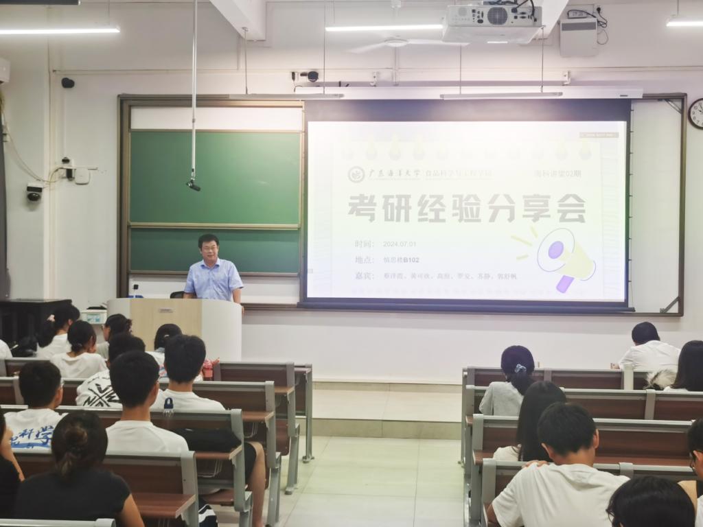 為加深學院學生對考研的了解,明確考研目標,掌握科學的備考策略,7月1日晚,我院于慎思樓B102舉辦了考研經驗分享專題交流會,本次會議共邀請了食品科技學院6名成功考取碩士研究生的2024屆畢業生為同學們分享寶貴的考研經驗。食品科學與工程學院黨總支書記夏杏洲、副院長楊新河、輔導員黃磊、輔導員郭穎萍出席本次會議。學院三個年級學生積極參會,到會人數近百人。