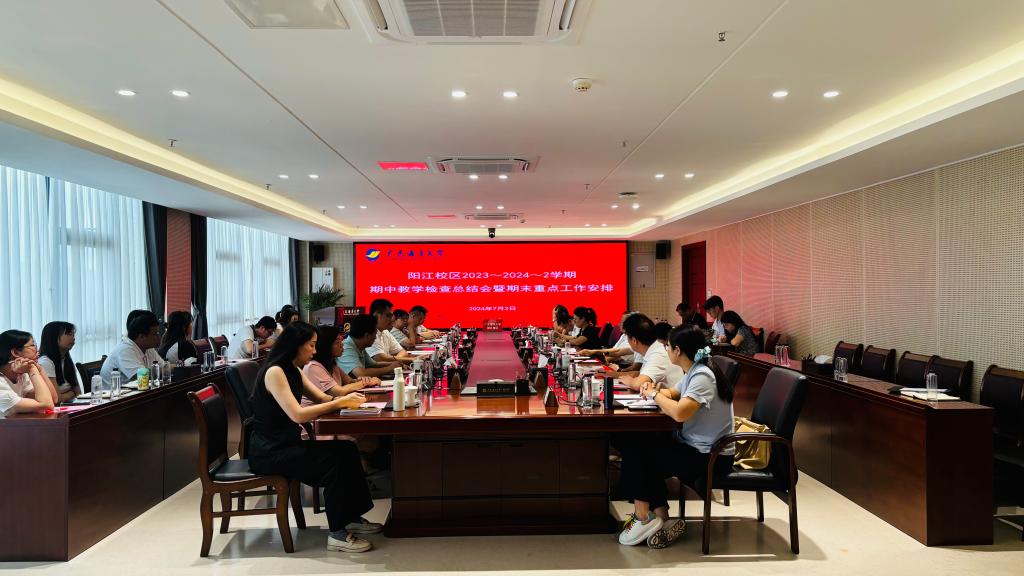 7月3日下午,陽江校區2023-2024學年第二學期期中教學檢查總結會暨期末重點工作安排會議在海納樓712會議室召開。教學科研部部長白浚宇主持會議,各行政職能部門負責人,圖書館負責人,各學院分管教學的領導,校區督導,陽江研究院相關負責人,各學院教務員,教學科研部全體人員參加會議。