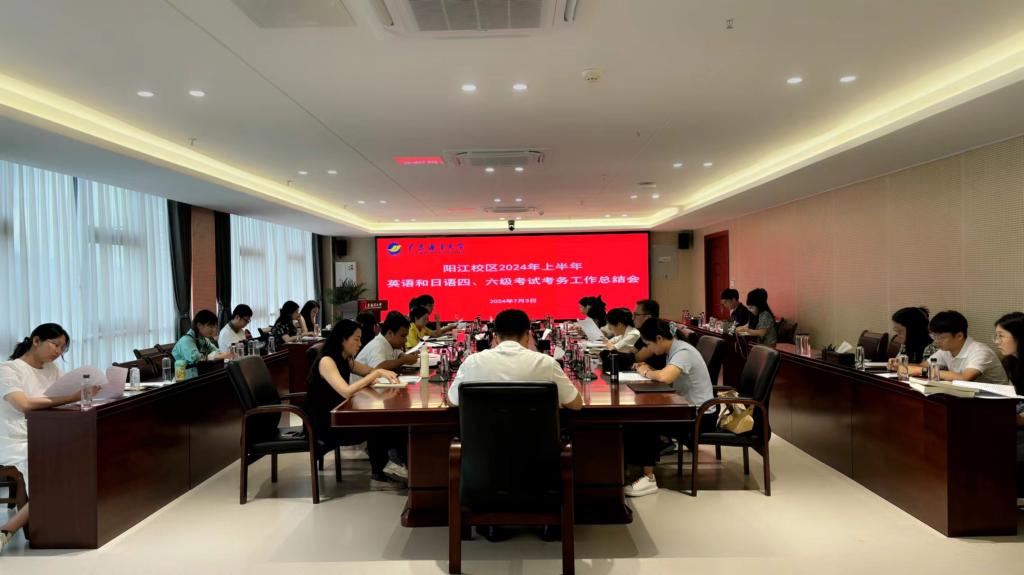 陽江校區2024年上半年全國大學生英語和日語四、六級考試于6月15日順利完成。為了全面回顧并總結本次考試組織過程中的經驗與不足,進一步優化陽江校區四、六級考試的組織流程,提升考務工作的管理水平,7月3日,陽江校區管理辦公室副主任、教學科研部部長、本次考試考務組組長白浚宇召集全體考務組成員在海納樓712召開陽江校區2024年上半年英語和日語四、六級考試考務工作總結會。