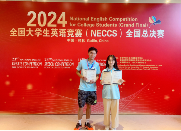 8月2日至7日,全國大學生英語競賽全國總決賽在廣西壯族自治區桂林市舉辦。經過與來自全國212所高校370名選手的激烈角逐,計算機科學與工程學院胡軒浩同學獲得演講比賽優秀獎、辯論賽三等獎,楊莞淳同學獲得演講比賽優秀獎,并被評為“優秀參賽選手”。