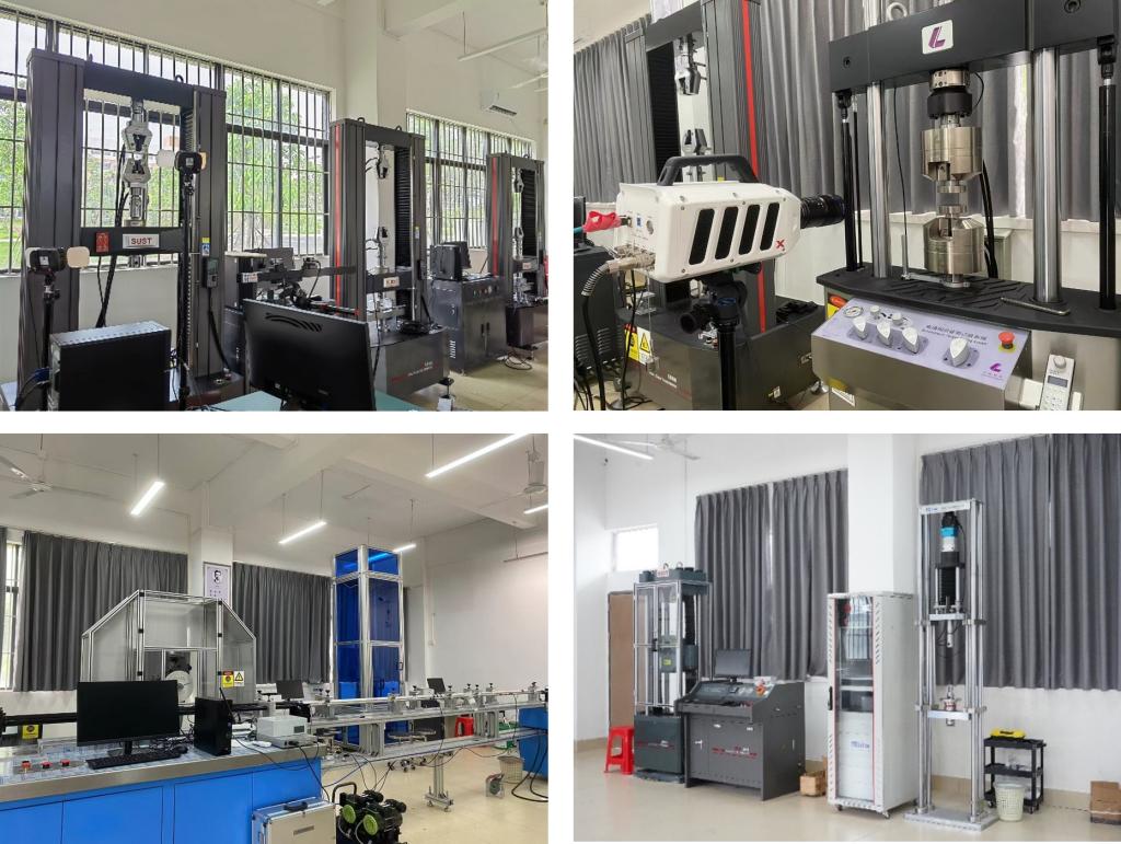 陽江市材料力學工程技術研究中心依托陽江校區(qū)力學分析校企聯(lián)合實驗室進行申報。力學分析校企聯(lián)合實驗室由陽江校區(qū)力學實驗中心和廣東史特牢緊扣系統(tǒng)有限公司聯(lián)建,力學相關儀器設備總值達1090.1萬元,擁有多種類型力學性能測試的相關設備,包括了10kN至600kN各種型號的電子萬能試驗機、擺錘沖擊試驗機、落錘沖擊試驗機、扭轉試驗機等基礎力學實驗設備,以及海水應力腐蝕試驗機、疲勞試驗機、緊固件橫向振動試驗機、緊固扭矩測試系統(tǒng)、殘余應力測試儀、DIC材料測試儀、硬度計、紅外成像儀、聲發(fā)射儀和聲阻測試系統(tǒng)等。主要承擔《理論力學》《材料力學》《風電設備基礎》等多門課程實驗實踐教學,面向機械設計制造及其自動化、機器人工程、材料成型及控制工程等專業(yè)。