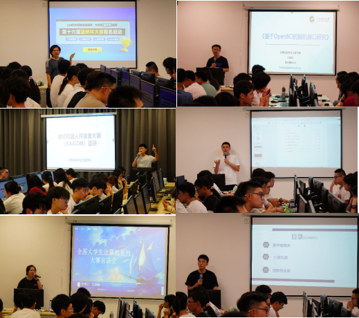 活動(dòng)還特邀了五位在往屆全國大學(xué)生計(jì)算機(jī)系列大賽中指導(dǎo)學(xué)生獲獎(jiǎng)的優(yōu)秀指導(dǎo)教師作為宣講人,邀請(qǐng)了往屆獲得國獎(jiǎng)的兩名學(xué)生結(jié)合自己的參賽經(jīng)歷,從備賽策略、團(tuán)隊(duì)合作、技術(shù)攻關(guān)等多個(gè)方面分享寶貴的經(jīng)驗(yàn)。嘉賓們生動(dòng)形象的講述和深入淺出的分析,讓在場的學(xué)生受益匪淺,也極大地激發(fā)了大家的參賽熱情。