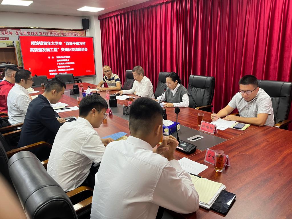 11月19日上午,校“百縣千鎮萬村高質量發展工程”青振興團隊助力閘坡海釣產業交流座談會在閘坡鎮人民政府召開。海陵試驗區黨建工作辦公室四級調研員、區總工會主席陳設,校區黨委委員、學生事務部部長孫學甫,海陵試驗區黨建工作辦公室(團委)負責人、閘坡鎮司法所所長林偉坤,海陵試驗區閘坡鎮委委員項瑋,海陵試驗區閘坡鎮副鎮長梁福權,團市委兼職副書記、陽江校區團委書記胡鶴瀧,海釣協會執行會長雷昂出席會議。會議由項瑋主持。