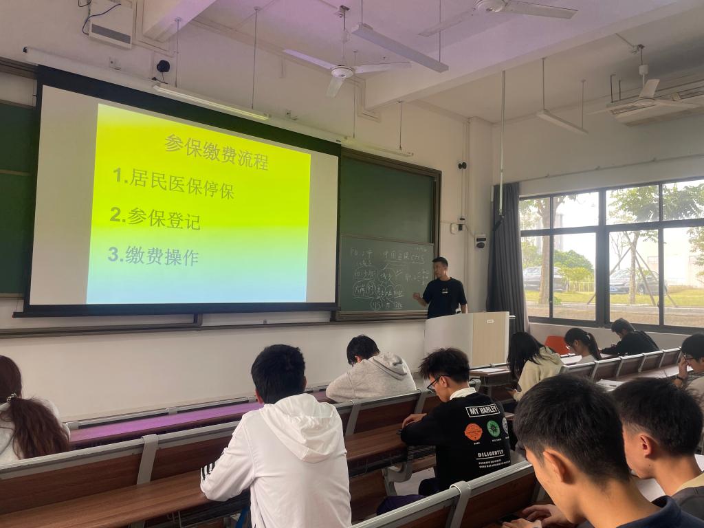 在講座中,講解員通過生動的案例和深入淺出的講解方式,調動同學們的興趣,使同學們對醫保政策有了更深入的了解和認識。他們不僅解答了同學們關于醫保參保繳費時間、標準、方式等方面的疑問,還現場演示了手機端操作流程,為同學們提供了現場參保登記服務和便捷、高效的參保指導。