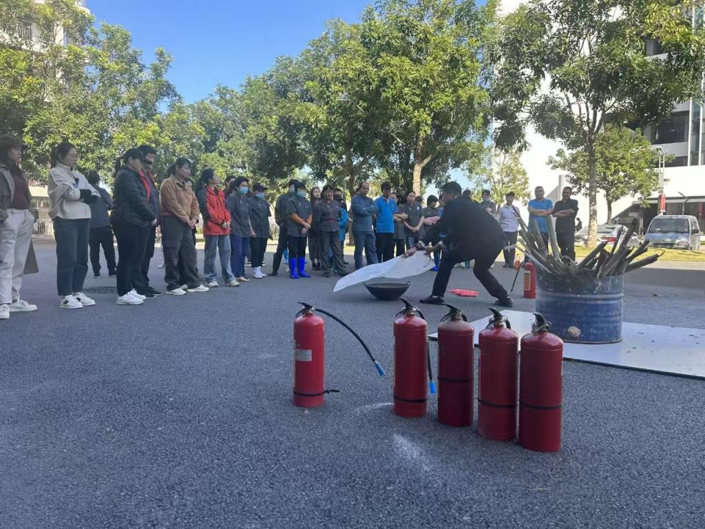 在理論講解的基礎上,培訓還安排了實操演練環節。在物業工作人員的指導下,飯堂員工們紛紛分別參與了滅火器使用及明火撲滅的實操演練。通過模擬火災場景,員工們分工協作,使用滅火器進行初期火災撲救,展現了良好的應急處置能力。