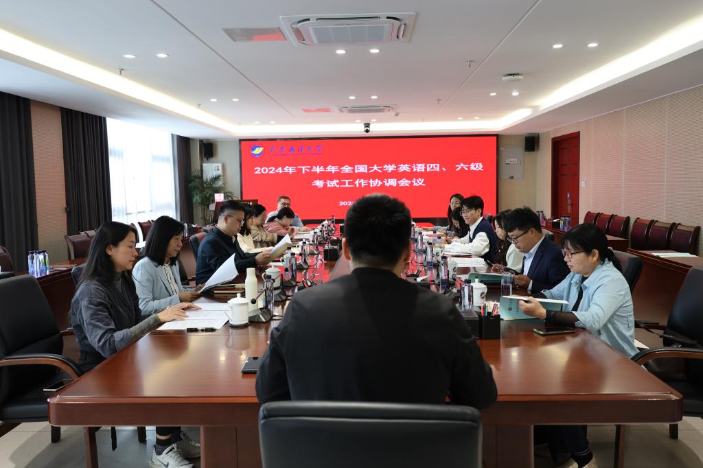 為確保2024年下半年全國大學英語四、六級考試的順利進行,12月11日下午,陽江校區在海納樓712會議室召開2024年下半年全國大學英語四、六級考試工作協調會議。校區黨委委員、管理辦公室副主任兼教學科研部部長白浚宇主持會議。校區黨委委員、管理辦公室副主任兼組織人事部部長劉波,后勤服務部部長周斌,圖書館館長李中,教學科研部副部長許文姬,教學科研部全體成員,綜合事務部、學生事務部、資產財務部有關同志及各學院教務員參加會議。