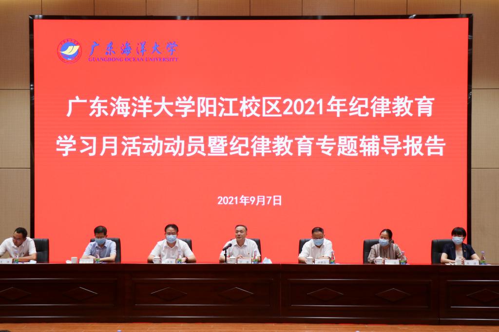 9月7日上午,按照學(xué)校黨委統(tǒng)一部署,陽(yáng)江校區(qū)黨委在陽(yáng)江校區(qū)海納樓一樓報(bào)告廳組織召開(kāi)陽(yáng)江校區(qū)2021年紀(jì)律教育學(xué)習(xí)月活動(dòng)動(dòng)員暨紀(jì)律教育專題輔導(dǎo)報(bào)告會(huì),校區(qū)全體干部教師參加。學(xué)校黨委常委、副校長(zhǎng)、校區(qū)黨委書(shū)記、管委會(huì)主任寧凌出席并作動(dòng)員講話暨專題輔導(dǎo)報(bào)告。校區(qū)黨委副書(shū)記、管委會(huì)常務(wù)副主任洪鵬志主持會(huì)議并講話。校區(qū)黨委委員、紀(jì)委書(shū)記毛琪對(duì)陽(yáng)江校區(qū)2021年紀(jì)律教育學(xué)習(xí)月活動(dòng)作了具體安排。