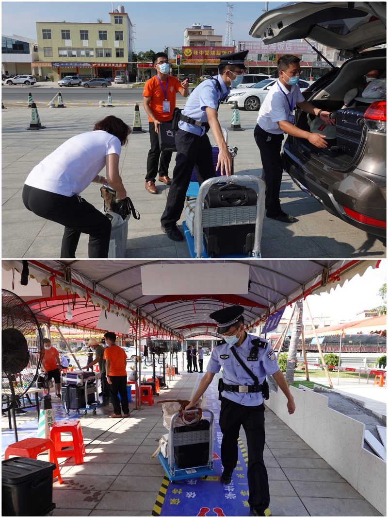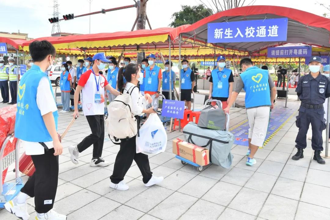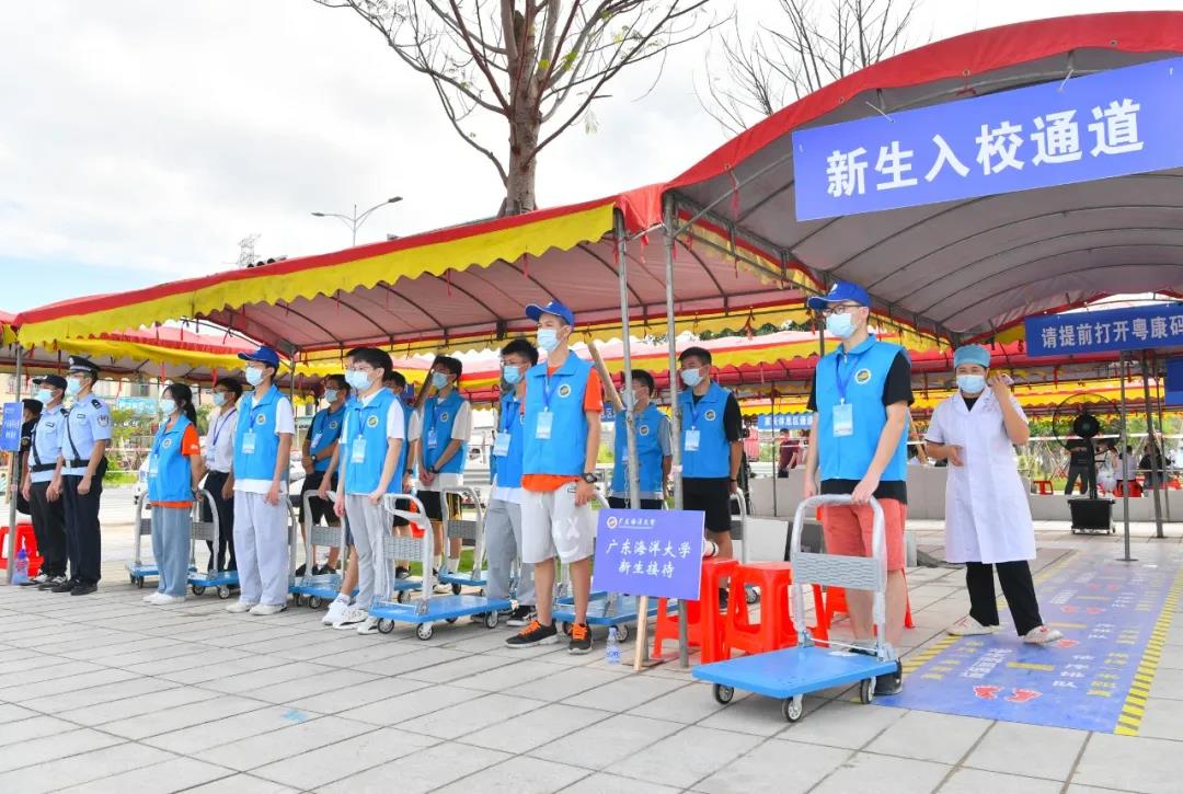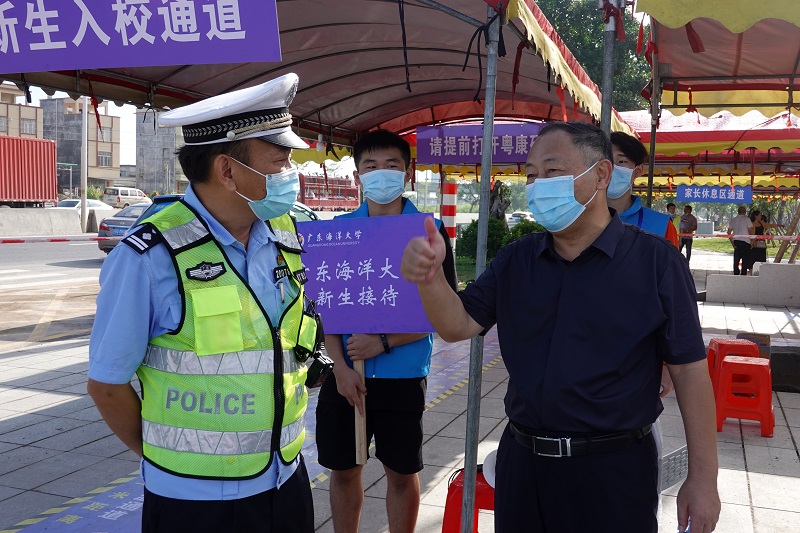 在陽江公安、醫務、交通系統人員的齊心助力下,“圓夢海大”迎新嚴守防疫要求,車輛即停即走,家長聽從指揮,做到“錯峰送學”,現場井然有序。
