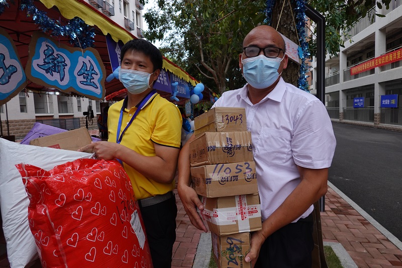 為方便新生,校方協調安排了兩輛大巴車到陽江高鐵站出口接送學生。校內也安排了四輛公車,新生一進校門口就將其送至學生公寓樓下的各學院報到登記點。