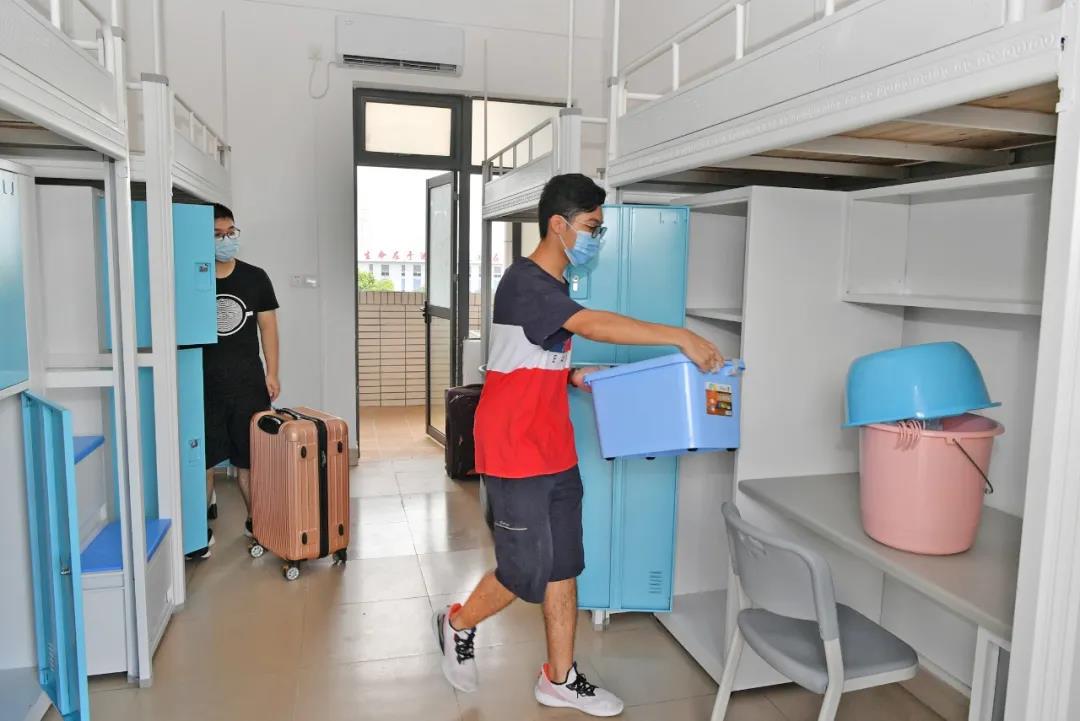 新生當天進校必須持粵康碼和48小時內核酸陰性檢測結果外省學生還要出示行程碼。進校后要做第二次核酸檢測,結果出來之前須暫時隔離。校門口除了有救護車就緒,還搭建了一個臨時的發熱觀察間。